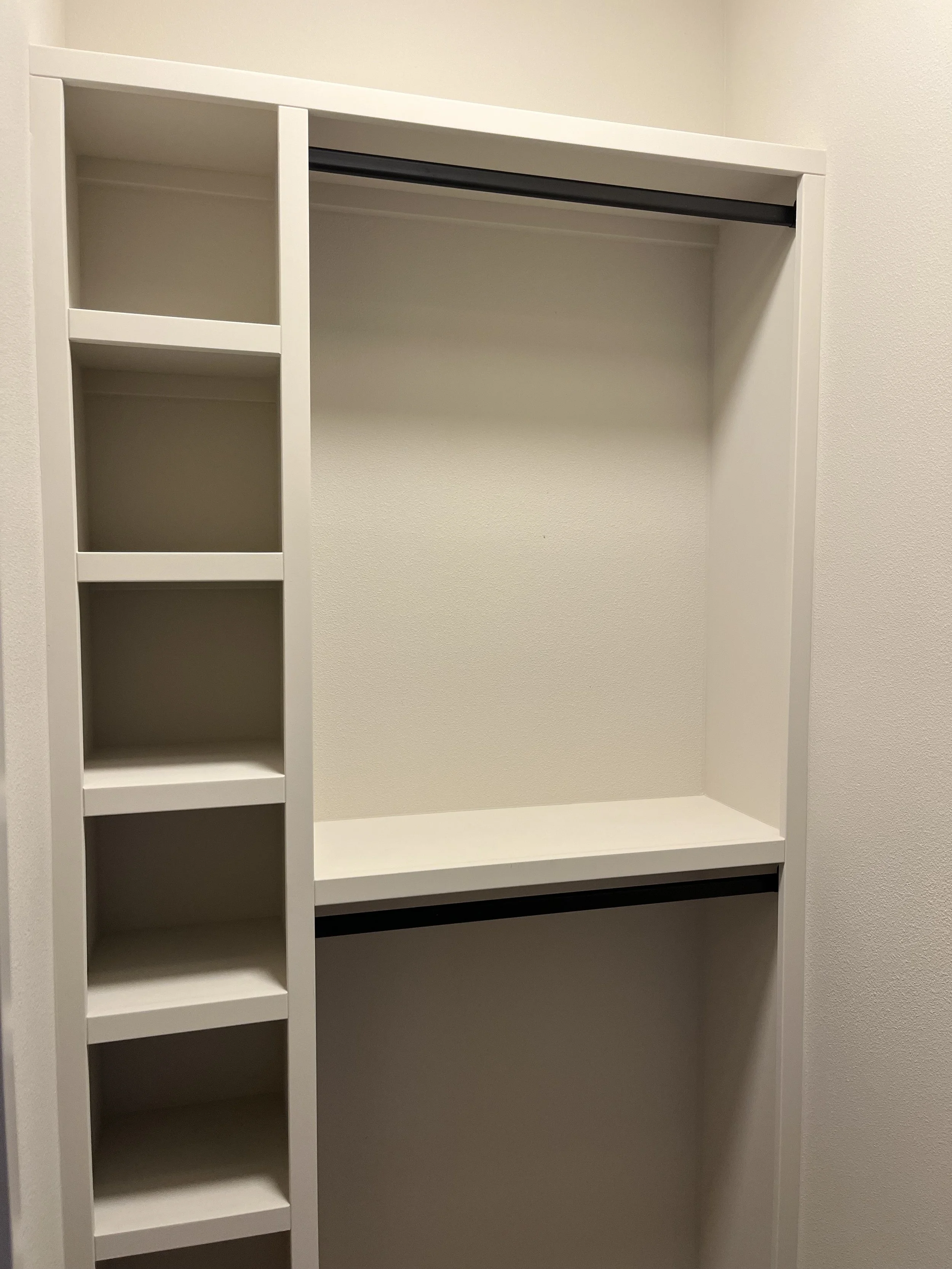 Need shelving, storage, or custom cabinetry? We design and build solutions tailored to your space and needs.